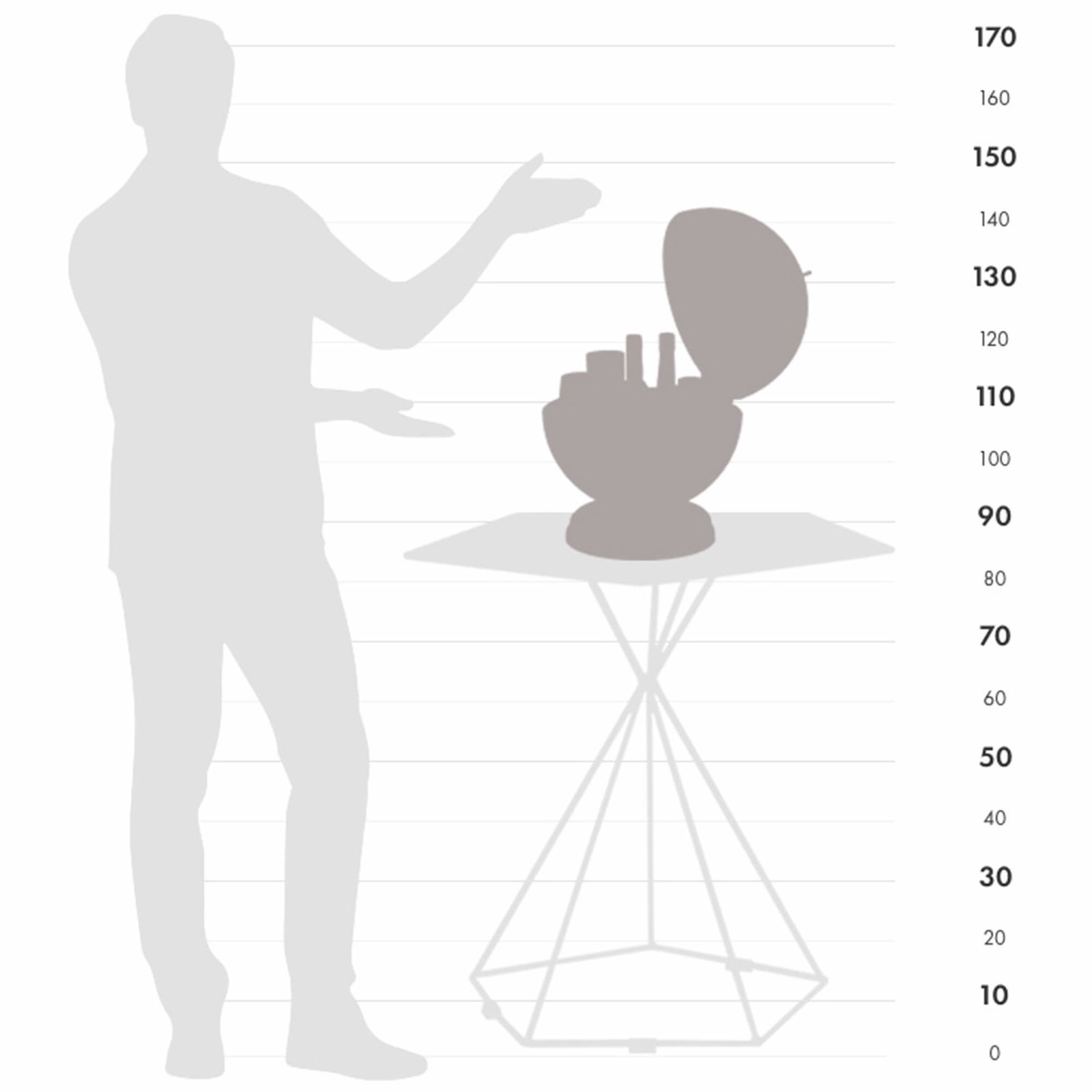 Met een diameter van 40 cm en een hoogte van 50 cm is de Giove Olive Green ideaal voor kleinere ruimtes of als subtiele blikvanger in een klassiek of modern interieur. De bol is volledig draaibaar en rust op een stevige, elegant vormgegeven voet. Binnenin bevindt zich een discreet compartiment voor flessen en glazen — perfect voor een ontspannen aperitief of stijlvol moment van gastvrijheid. De Olive Green brengt rust, klasse en authenticiteit samen in een tijdloos Italiaans ontwerp.